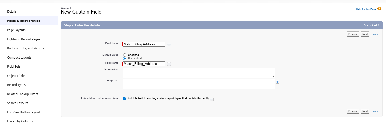 - Account 객체에 Match Billing Address 필드 추가하기